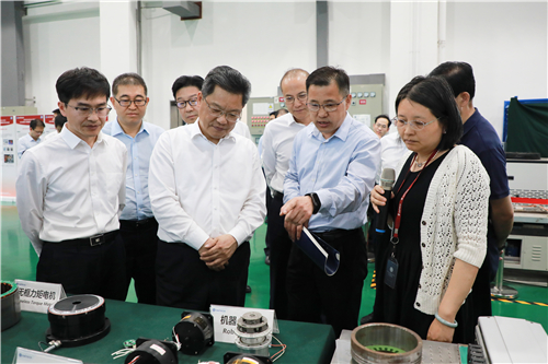 签约结束后,任振鹤一行先后参观了宁波材料所展厅和先进制造工程中心,了解了研究所在涉海极端环境使役材料、磁性功能材料与器件、高性能纤维与复合材料、新能源材料与技术、高性能电机、工业机器人等方向重要成果的研发及应用情况。双方就成果和技术的先进性、当前研究应用情况及未来产业化前景等进行了交流,并就开展合作的可行性进行了探讨。