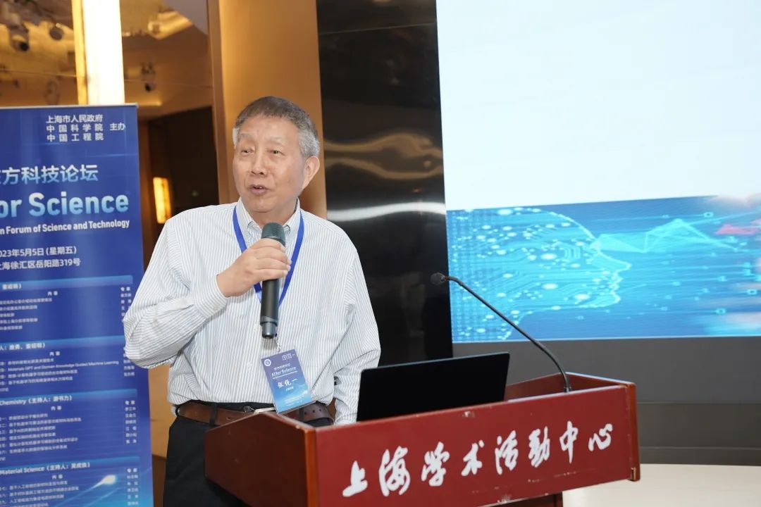 为贯彻党的二十大精神,落实2023年中科院工作会议部署,助力上海建设具有全球影响力的科技创新中心,进一步加强基础研究,推动人工智能在科学研究领域应用的不断拓展,推动学科交叉融合和科研范式创新,加速前沿科学研究和关键核心技术攻关,5月5日,由上海市人民政府、中国科学院和中国工程院共同发起,中国科学院上海硅酸盐研究所与中国科学院上海有机化学研究所共同承办的第362期东方科技论坛“AI for Science” 学术研讨会在中国科学院上海分院举办。中国科学院院士、中科院上海有机所所长唐勇研究员和中国工程院院士、中科院上海硅酸盐所研究员董绍明共同担任论坛主席,中国科学院院士、上海大学教授张统一,中国科学院院士、北京师范大学教授方维海,中国工程院院士、上海交通大学教授丁文江,中国工程院院士、北京科技大学教授谢建新,中国科学院院士、中国科学院大连化学物理研究所研究员张东辉,上海有机所副所长刘文,上海硅酸盐所副所长苏良碧,上海市科委、经信委、发改委,中科院上海分院领导以及高等院校、科研院所、人工智能相关企业等100余位专家学者参加论坛。