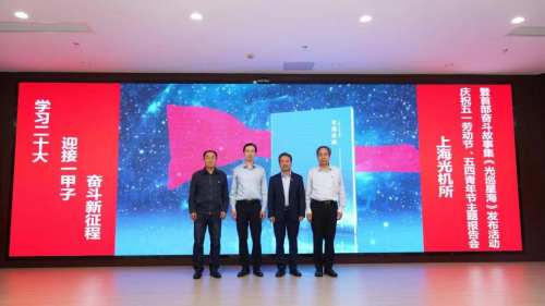 5月4日,嘉定区总工会党组书记李敏,嘉定区宣传部副部长沈吉敏和上海光机所党委书记邵建达,所长、党委副书记陈卫标共同为《光巡星海》揭开帷幕。会上,邵建达、陈卫标为《光巡星海》作者代表颁发书籍。