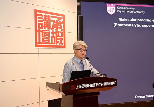 2023年5月22日,“药学前沿承嘏讲坛”第五十三讲在承嘏厅举行。韩国高丽大学Jong Seung Kim教授应邀作了题为“Molecular prodrug engineering towards precision drug delivery”的专题报告。原创新药研究全国重点实验室副主任程震研究员主持报告会,药物所本部及中山、烟台研究基地的百余名科研人员和研究生参会。