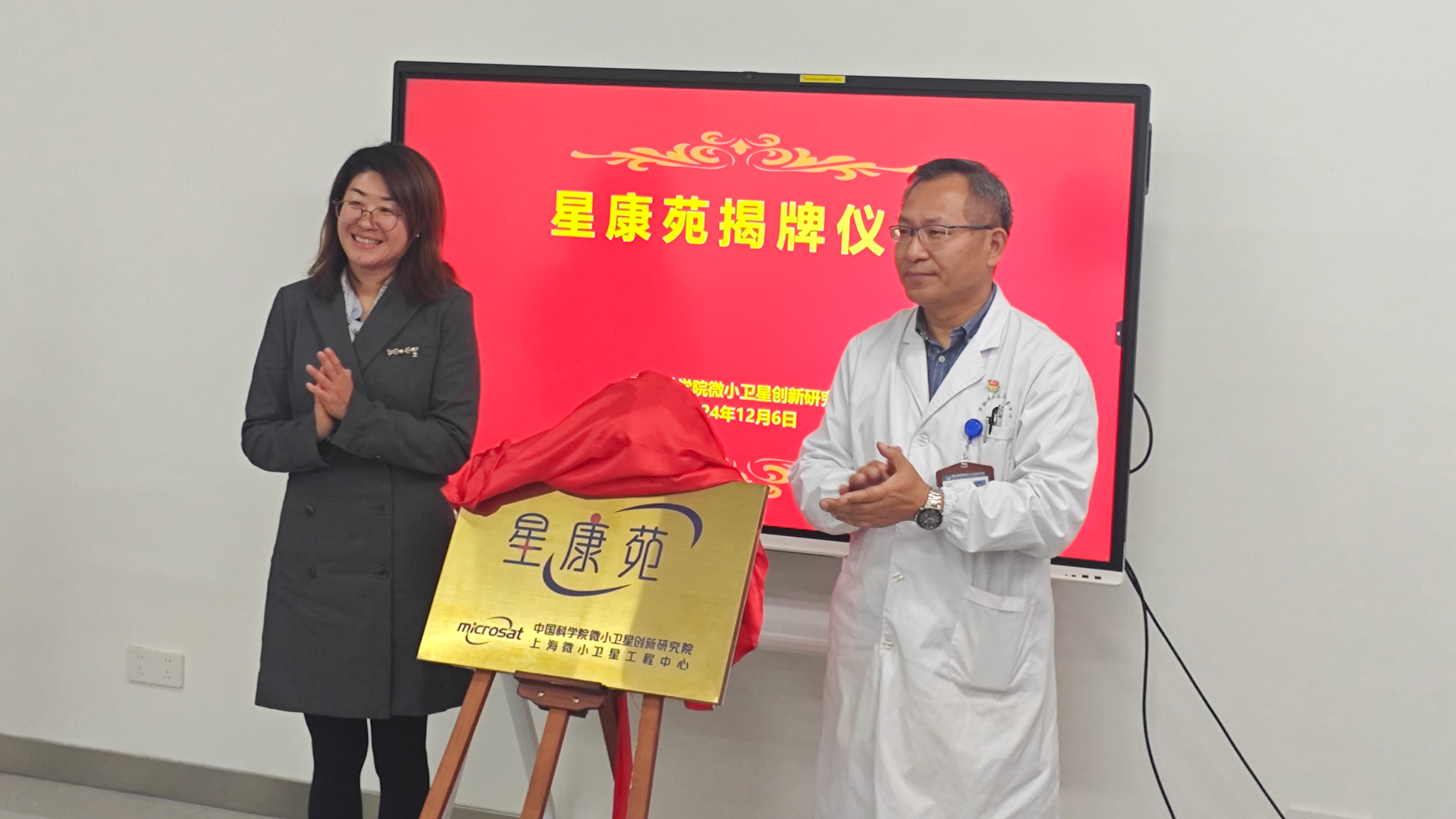 在热烈的掌声中,罗琦和祝志军共同为“星康苑”揭牌,标志着这一健康服务平台正式投入使用。仪式上,祝志军表示,将全力支持“星康苑”的发展,后续将“互联网+”医疗模式引入在卫星创新院医疗服务过程中,共同为职工提供优质的健康服务;罗琦表示,此次“星康苑”的建成,是卫星创新院落实“3H”工程建设的重要举措,也是与南汇新城镇社区卫生服务中心携手共筑健康路的重要里程碑。她指出,“星康苑”作为健康服务平台,会不断提供专业便捷的医疗服务,为大家的身心健康保驾护航。