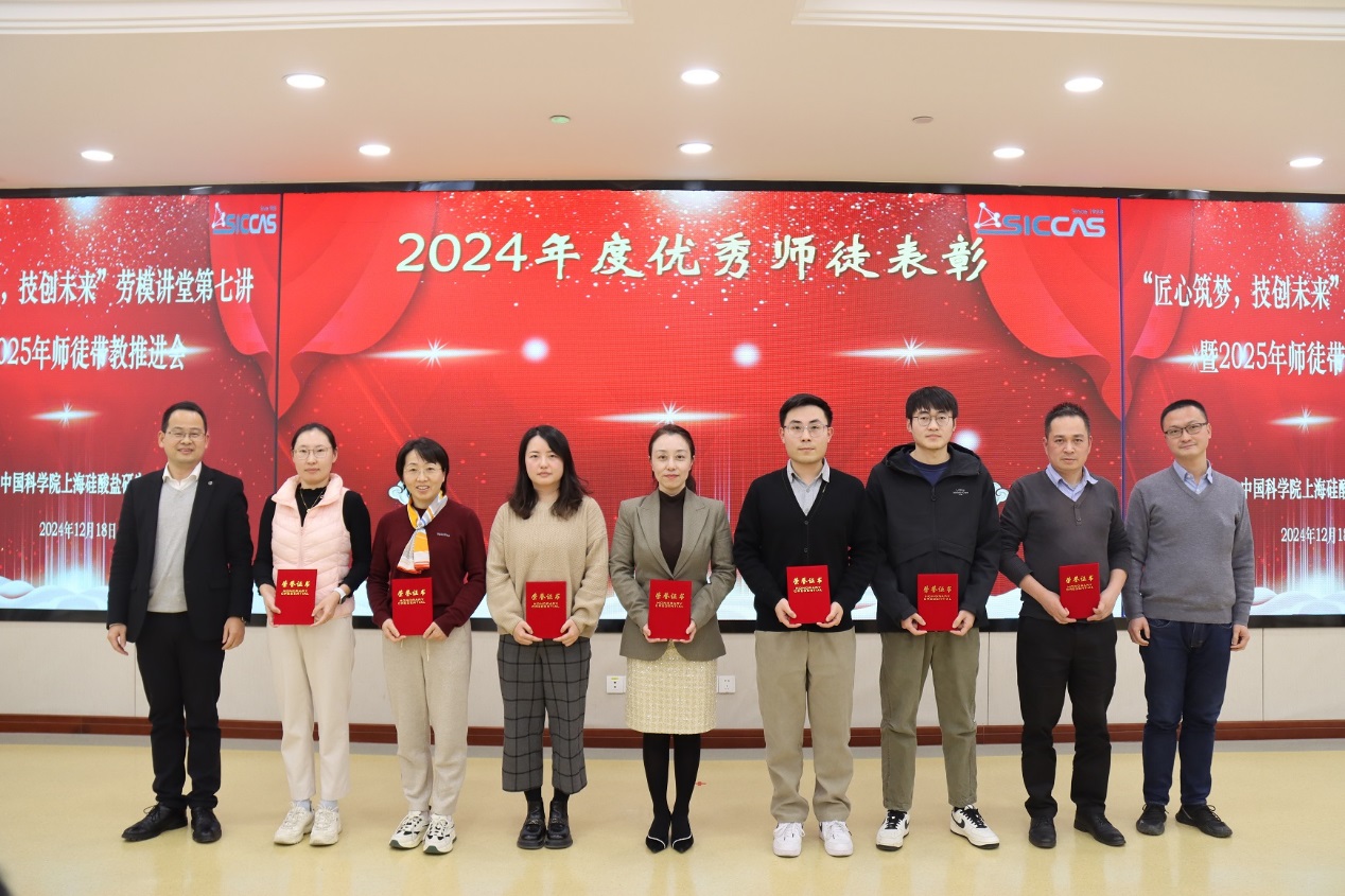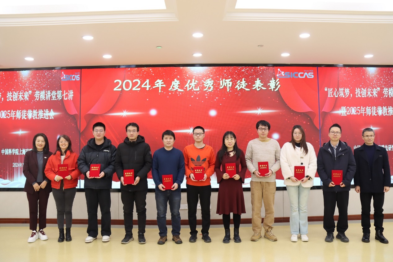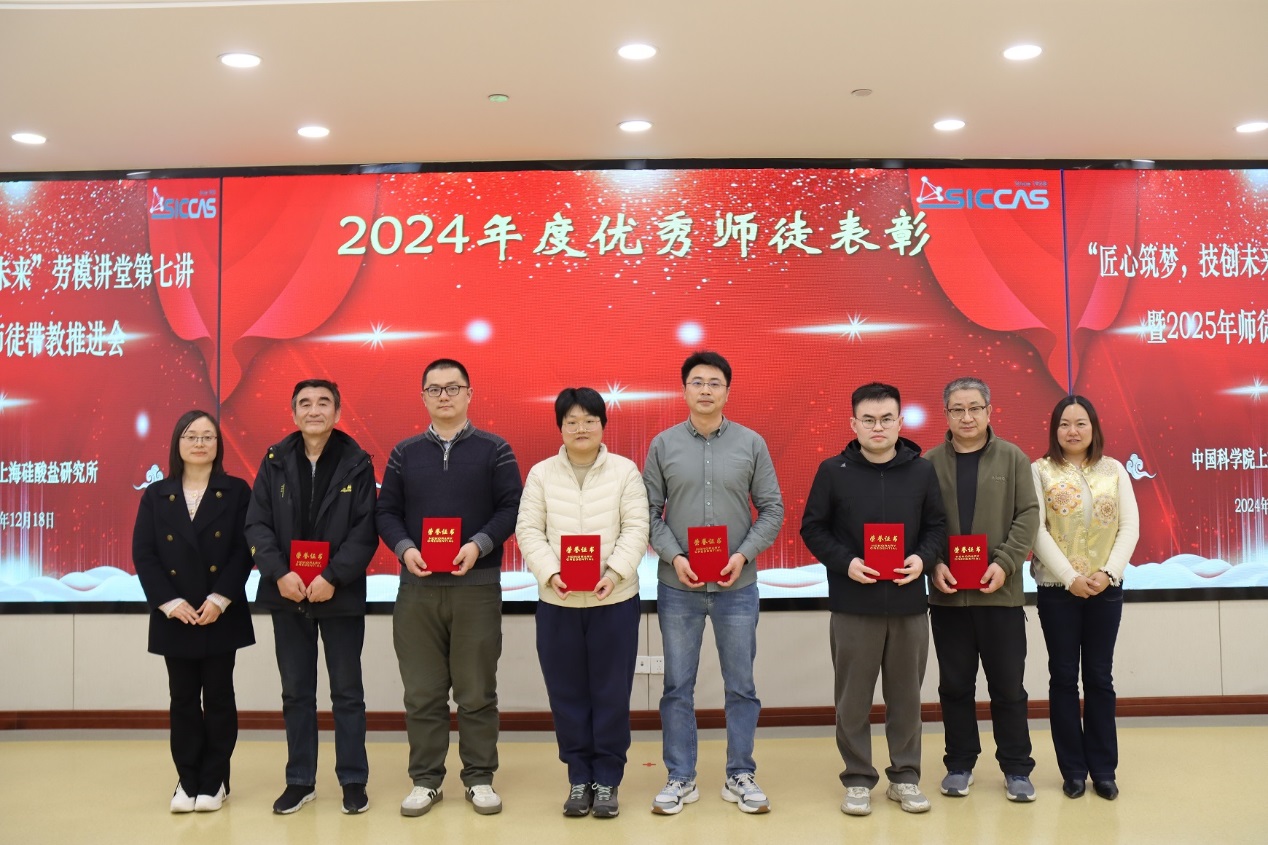 所工会委员、人工晶体研究中心主任刘学超宣读了2024年度优秀师徒表彰决定,党委办公室主任、所办公室主任毛朝梁,新材料中试研发中心党支部书记袁兰英、能源材料研究中心党支部书记张涛、机关三党支部书记宋桂兰、特种无机涂层中心党支部书记孟佳、无机材料分析测试中心党支部书记钱荣、机关二党支部书记刘军、结构陶瓷与复合材料工程研究中心党支部书记殷杰为20对优秀师徒颁奖。