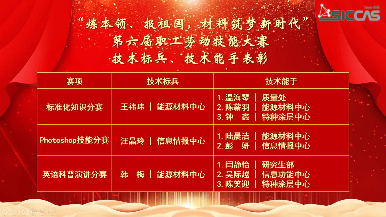 上海硅酸盐所第六届职工劳动技能大赛技术标兵、技术能手获奖名单