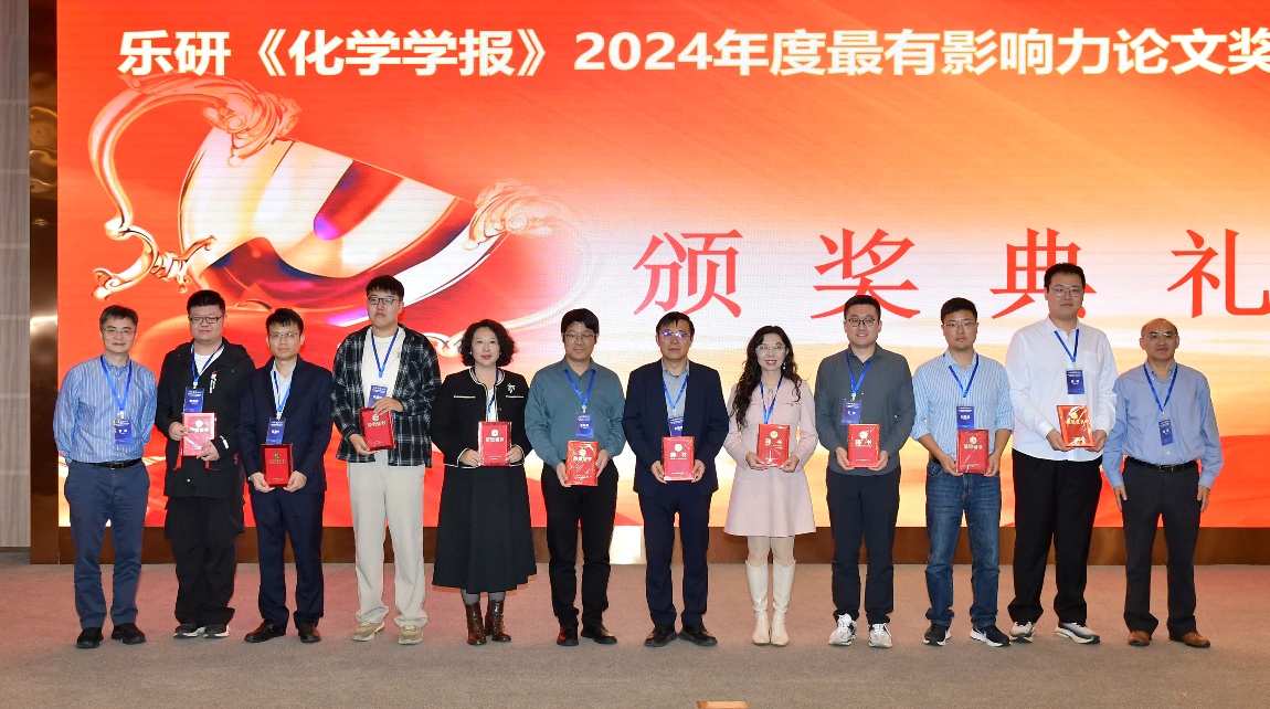 会议期间还举行了“乐研《化学学报》2024年度最有影响力论文奖”颁奖典礼,史炳锋、赵可清、秦安军、周莹、石枫、张万斌、张莹莹、朱守非、戴松元、王海燕教授等作者的10篇优秀论文获奖。唐勇院士与俞飚院士为获奖作者代表颁发证书并合影留念。该奖项旨在表彰近年来在《化学学报》上发表的高影响力研究成果,激励更多优秀科学成果的产出。