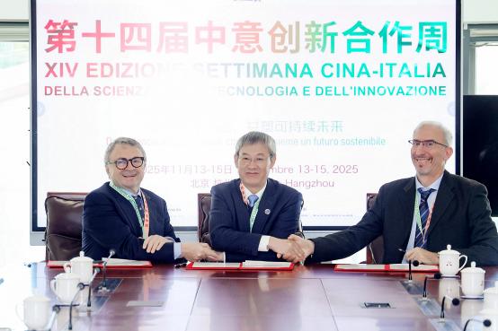 2025年11月13日,第十四届中意创新合作周在北京开幕。科技部部长阴和俊、意大利大学和研究部部长安娜·玛丽亚·贝尔尼尼、北京市副市长靳伟在京出席开幕式并致辞。本届合作周设北京主会场和杭州分会场,分别在上海和三亚两地举办中意创新合作主题日活动,设立平行论坛。中国科学院上海高等研究院(以下简称“上海高研院”)在开幕式上与意方合作伙伴签署共建中意交叉科学研究中心合作章程,并承办上海主题日中意交叉论坛及中心揭牌仪式。