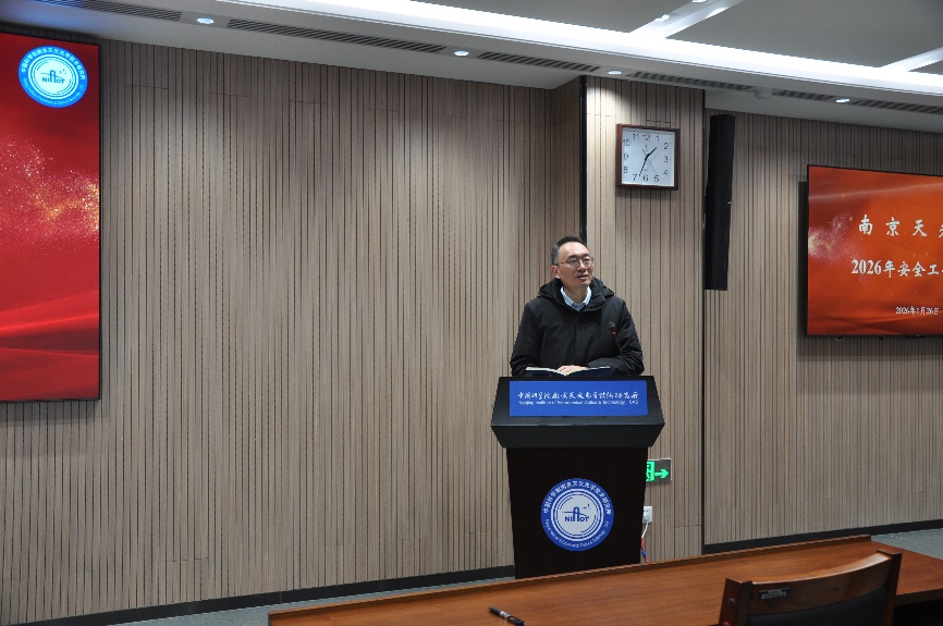 为贯彻落实中国科学院关于科技安全工作的最新要求,统筹研究所科技创新高质量发展与安全,总结2025年安全工作和部署2026年安全管理重点,压实各方面安全责任,切实筑牢安全防线,1月26日,南京天光所在麒麟园区召开2026年度安全工作会议。研究所领导班子全体、中层干部及安全体系责任人等50多人参加会议。会议由综合事务处处长郑健主持。