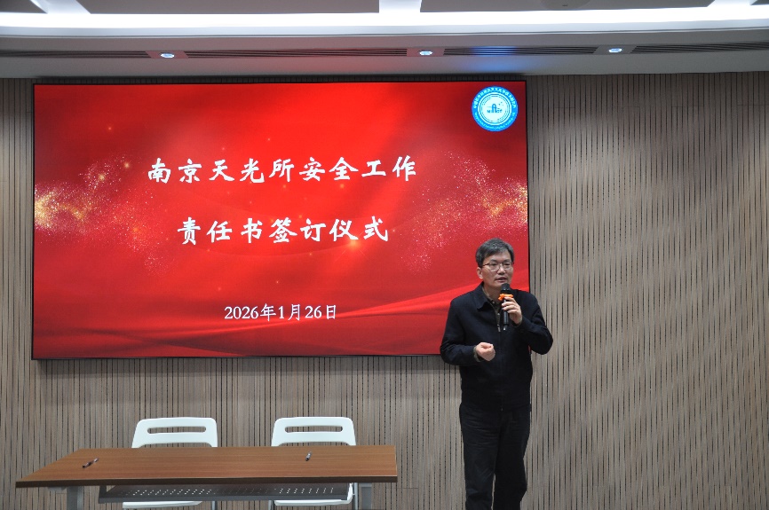 会议期间举行了2026年度安全工作责任书签订仪式。研究所法定代表人、所长宫雪非分别与分管安全所领导任树林、天文光谱与高分辨成像技术研究室主任张凯和科技处处长侯永辉等代表现场签订了安全责任书,进一步压紧压实各级安全主体责任。