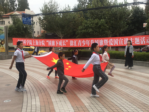 为进一步激发广大青少年“讲爱国奉献,当时代先锋”的爱国热情,弘扬以爱国主义为核心的民族精神,增强国家观念、增进民族自信心和民族自豪感,10月14日早晨,由上海团市委指导,徐汇团区委主办,中科院上海分院团委承办的“国旗下成长”徐汇青少年升国旗暨爱国宣讲主题活动在上海图书馆举行。近20名来自中科院上海分院系统的青少年在家长的陪同下,参与并见证了这庄严神圣的光荣时刻。