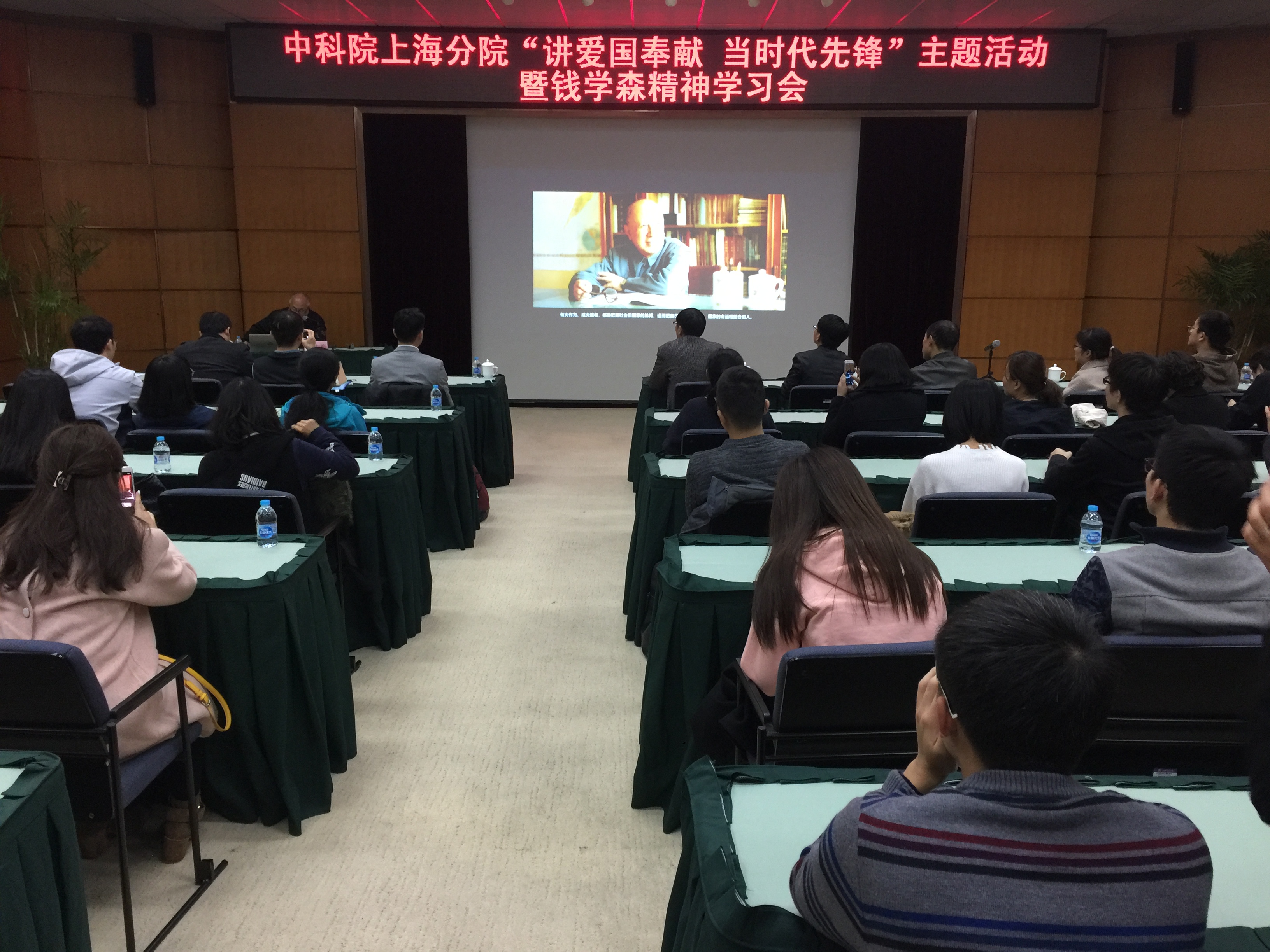 11月23日下午,中科院沪区党委在上海交通大学钱学森图书馆举办“讲爱国奉献,当时代先锋”主题活动推进会暨钱学森精神专题学习会。上海分院分党组副书记、副院长、沪区党委副书记田申荣出席会议并讲话,各研究院所近年来新引进的海外归国科研骨干以及两委委员联系的非党科研骨干等近60人参加学习会。