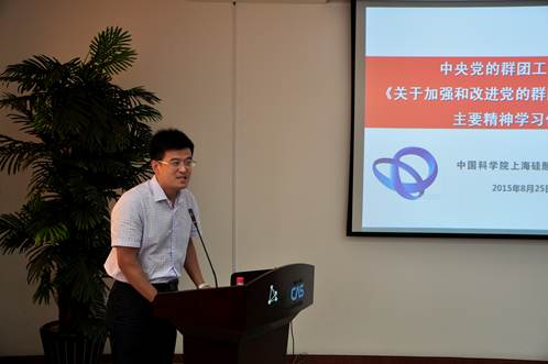 所党委书记刘岩首先传达了《中共中央关于加强和改进党的群团工作的意见》和中央群团工作会议精神。他指出,由党中央召开党的群团工作会议,这在党的94年历史上还是第一次,中央政治局7位常委全部出席会议,规格之高,前所未有,说明党中央高度重视党的群团工作。他从党的群团工作的意义、重要性、特色和具体要求等关键词出发,解读了本次群团工作会议的主要精神;从群团组织的概念、群团工作的重要性以及如何改进群团工作等方面,并结合上海硅酸盐所的具体情况,阐释了《中共中央关于加强和改进党的群团工作的意见》的核心内容。