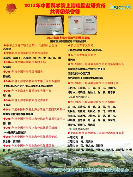 附2015年上海硅酸盐研究所共青团荣誉榜
