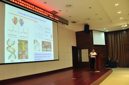 “化学前沿研讨会”由周其林院士致开幕辞,丁奎岭所长对参会代表们表示了欢迎和感谢,在《化学学报》副主编丁奎岭、张希、江桂斌、周其林院士和帅志刚教授的主持下,冯小明院士,黎占亭、黄飞鹤、潘远江、张锦、胡征、王训、刘景富、胡敏、龙亿涛、任斌、黄飞、王树、黄培强、龚流柱、刘海超、张亚文、郑丽敏、夏永姚教授等专家分别作了特邀报告,内容涵盖了化学各学科领域当前的前沿热点,此次会议为国内化学科研工作者交流与学习提供了一个好的平台,同时也促进了化学不同学科间的相互了解,有助于推动跨学科的学术交流与合作。