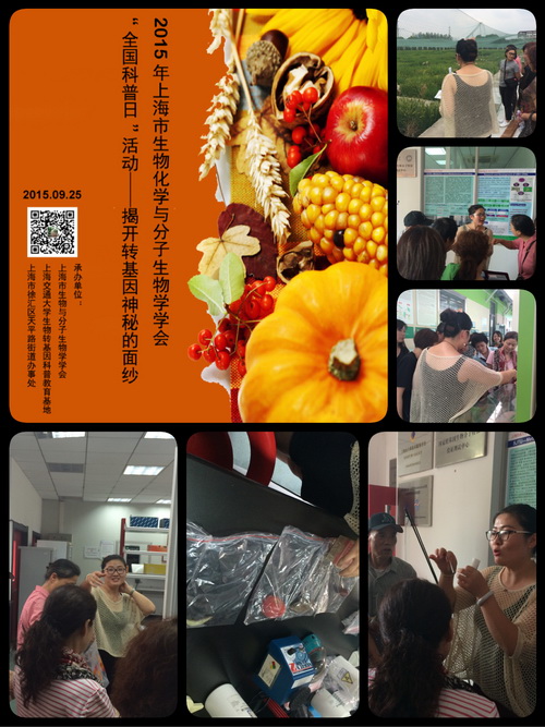 9月25日,上海市生物化学与分子生物学学会联合上海交大生物转基因科普教育基地和上海市徐汇区天平路街道办事处举办了2015年“全国科普日”活动——“揭开转基因食品安全争议报道的神秘面纱”。这次活动是上海市生物化学与分子生物学学会“转基因与我们的生活”系列活动的第二期,旨在向大众普及转基因常识和现今我国转基因作物应用的基本状况,帮助大众理性地辨识媒体关于转基因的报道。