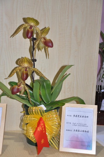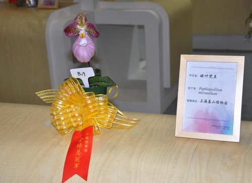 个体兰花竞赛中,经过兰花专家的专业评审,上海辰山植物园(中科院上海辰山植物科学研究中心)的三件参赛作品分别获得了大会的全场总冠军、银奖和铜奖。其中,硬叶兜兰(Paphiopedilum micranthum)获得全场总冠军,硬叶兜兰的花期约为3-5月,能在此次大会期间开花十分不易,是团队进行花期调控的结果。美洲兜兰和兜兰的杂交品种(Phragmipedilum longifolium XPhragmipedilum besseae、Paphiopedilum In Charm Lady XPaphiopedilum rothschildanm)分别获得银奖和铜奖。