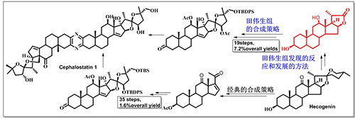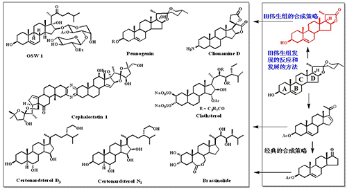 中国科学院天然产物有机合成化学重点实验室田伟生课题组发展的,从甾体皂甙元合成甾体-16-羟基-22-酸内酯的方法以及用其合成天然甾醇化合物的新策略,为具有挑战性的天然甾醇化合物合成开启了一扇大门,为解决天然甾醇化合物生物活性及其构效关系研究所需样品的难题提供了利器。
