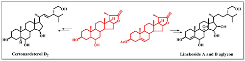 图4.Certonarsterol D2和Linckoside A和B的合成
