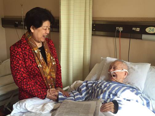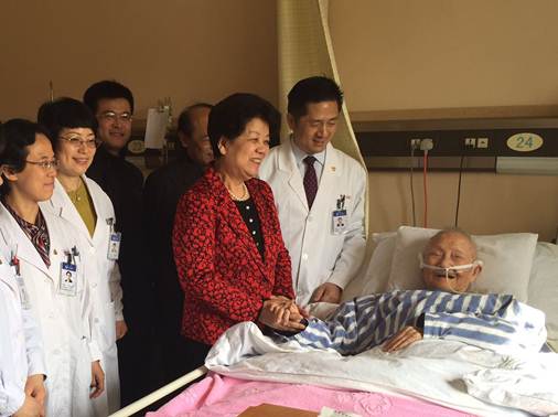 2月24日上午,第十一届全国人大常委会副委员长、原国务委员陈至立来到中山医院看望中国科学院上海硅酸盐研究所97岁的老科学家李家治先生。