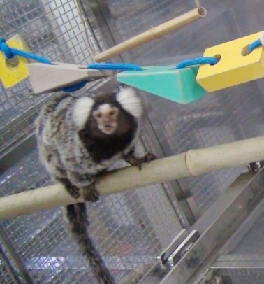 狨猴在饲养环境中玩耍