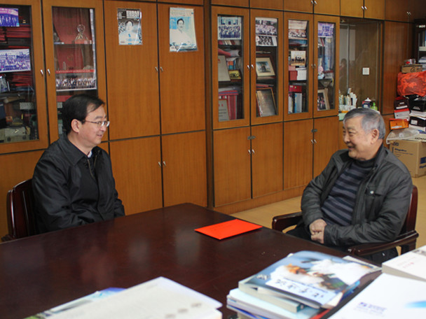王宁(右)慰问洪茂椿院士(左)