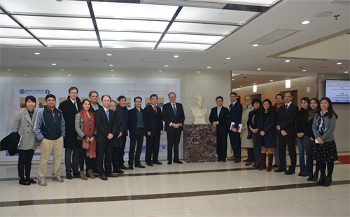 1月29日下午,法国驻华大使顾山(Maurice GOURDAULT-MONTAGNE)、法国驻沪总领事柯瑞宇(Axel CRUAU)、法国驻沪科技领事Frédéric BRETAR一行访问中科院上海巴斯德研究所。中科院上海分院院长朱志远、上海生命科学研究院党委书记汤伯伟、上海巴斯德所所长唐宏、科研联合所长安瑞璋(Fernando ARENZANA)、党委书记司胜利、副所长蓝柯、所长助理李斌、所长专项助理巴罗理(Laure PALLEZ)接待了顾山一行。参与法中合作研究项目的中方研究员孟广勋、黄忠,Dimitri LAVILLETTE, Brigitte GICQUEL, Serge BENICHOU等法籍研究员和Lucie BRACQ等外籍留学生参加了座谈。