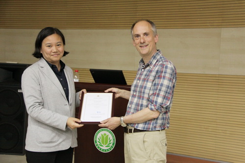 植生生态所副所长唐威华研究员、所长助理王佳伟研究员对Harberd的到来表示热烈欢迎。Harberd为植生生态所师生作了题为“From 20th to 21st Century Green Revolutions: Integrating Shoot and Root Biology”的报告,何祖华研究员主持报告。报告厅里座无虚席,大家认真聆听这位学术界领军人物的学术报告,把握难得的机会与他交流。报告会后,唐威华为Harberd颁发嘉许证书,感谢他为大家精心准备的精彩报告。