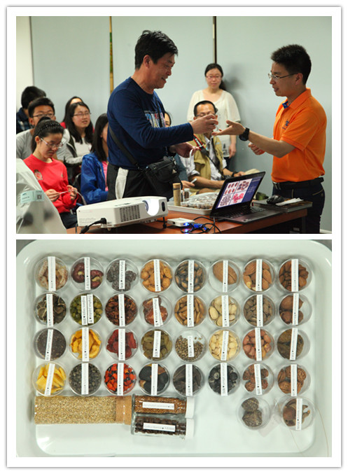 标本馆馆员葛斌杰首先作《植物种子的食用与赏析》的科普讲座,报告以植物种子为线索,解答了什么是种子,为何要结种子,种子的多样性等问题,并围绕种子在衣食住行等方面的用途进行展示,引导听众们在现场“大开脑洞”,惊叹不断。讲座结束后,葛斌杰又与听众们互动,通过种子识别游戏让大家在快乐中学习知识。随后,听众分组参观了辰山中心的展示区、上海市资源植物功能基因组学重点实验室、植物化学分析实验室、上海辰山植物园图书馆(中科院生命科学图书馆辰山植物学分馆)、上海辰山植物标本馆(CSH)等区域。听众们漫步在科研中心大楼,感受植物科研的氛围的同时聆听科研人员的讲解,了解最新研究进展和目标。最后全体人员在大草坪上合影留念,参与者对这样紧凑而周密的“深度游”给出好评,纷纷表示未来将继续关注辰山的活动和发展。