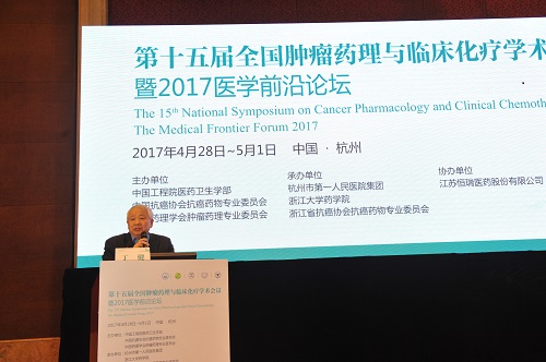 2017年4月28日至5月1日,“第十五届全国肿瘤药理与临床化疗学术会议暨2017医学前沿论坛”在浙江杭州召开。会议吸引了来自全国各地约900余名代表参会,大会主席、上海药物所丁健院士致开、闭幕词。