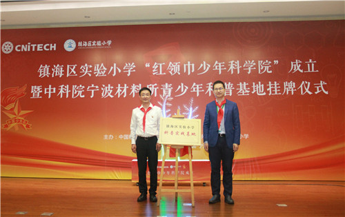 陈亮和韩亚斌为中科院宁波材料所青少年科普实践基地揭牌