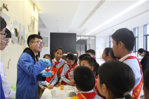 仪式结束后,镇海区实验小学的“小院士”们观看宁波材料所科研人员精心准备的吸油实验、3D打印实验与弹性传感实验,近距离感受了科技的魅力。