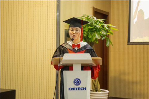 宁波材料所2014级硕博连读生乐晓霞代表2019届全体毕业生发言,她回顾了在所求学期间的点滴成长,表达了对导师谆谆教导的由衷感谢和对宁波材料所的感恩之情。乐晓霞表示,毕业既是一个终点又是一个起点,在新的人生征途中,将用记忆拥抱过去,用希望拥抱未来,要以最饱满的热情去勇敢地面对各种挑战,用材料所赋予的知识和智慧描绘出壮美的人生画卷。