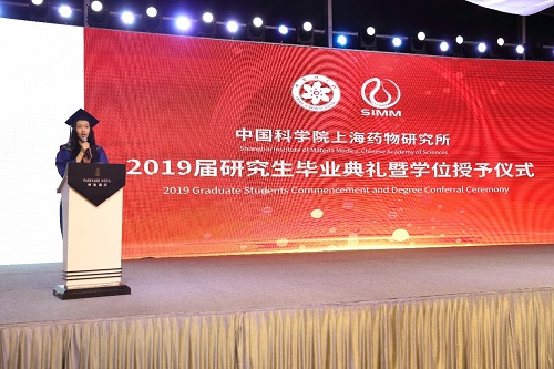 毕业生代表管栋梁分享了在药物所求学过程中挑战自我、不断奋进的历历往事,表达了对师恩的由衷感激之情和对药物所的无限留恋。留学毕业生代表Zhamilya Abilova则向药物所、导师和父母的培养与教导表达深深的谢意。