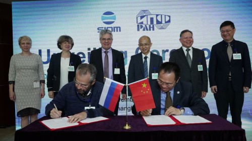 随后举行了中科院上海光机所-俄科院应用物理研究所激光联合实验室揭牌仪式。俄科院Alexander Sergeev院长和中科院张亚平副院长共同为联合实验室揭牌。中科院上海光机所邵建达党委书记和俄科院应用物理研究所Efim Khazanov副所长签订了联合实验室合作协议。