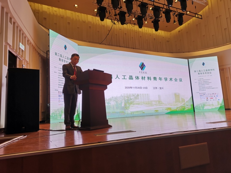 11月20-23日,第二届人工晶体材料青年学术会议(YCCG-2 2020)在江苏宜兴召开。会议由《人工晶体学报》、北京中材人工晶体研究院有限公司主办,中国科学院上海硅酸盐研究所、中国科学院上海光学精密机械研究所、同济大学物理科学与工程学院、上海应用技术大学、上海人工晶体研发与转化功能型平台、国家新材料测试评价平台先进无机非金属材料行业中心、宜兴市科技镇长团共同承办。来自相关高等院校、科研院所和企事业单位的500余名专家学者、在读研究生参加了此次会议。大会主席、中国科学院院士、南京大学教授祝世宁,上海硅酸盐所所长宋力昕,宜兴市委常委、常务副市长何晓进,北京中材人工晶体研究院有限公司副院长黄存新分别在开幕式上致辞。会议组织委员会主任、上海硅酸盐所副所长苏良碧主持大会开幕式。