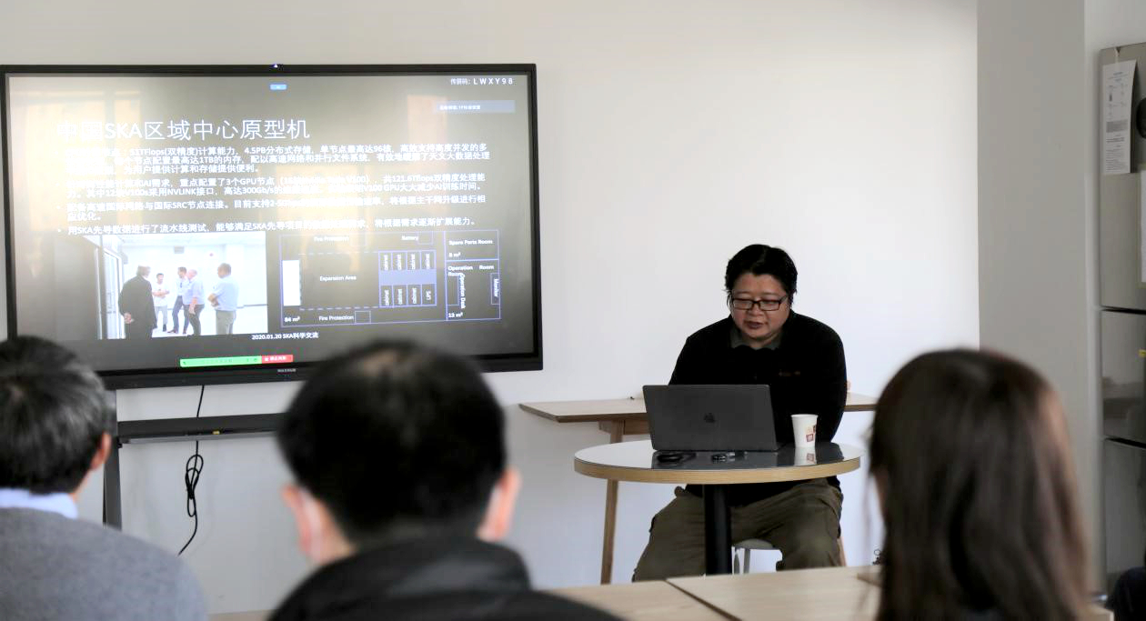 徐志骏高级工程师作关于“中国SKA区域中心原型机总体情况”的报告。报告指出,2019年8月10日,SKA区域中心原型机基本完成全部系统安装,2020年8月完成升级改造。中国SKA区域中心原型机的成功研制是SKA建设过程中的重要进展,得到了科技部和SKA国际组织的高度认可,“建成世界首台区域中心原型机”入选全国2019年度十大天文科技进展。中国SKA区域中心原型机已使用SKA先导数据开展了流水线测试,能够满足SKA先导项目的数据处理需求,并支持科学用户利用原型机平台和SKA先导望远镜数据开展科学研究。
