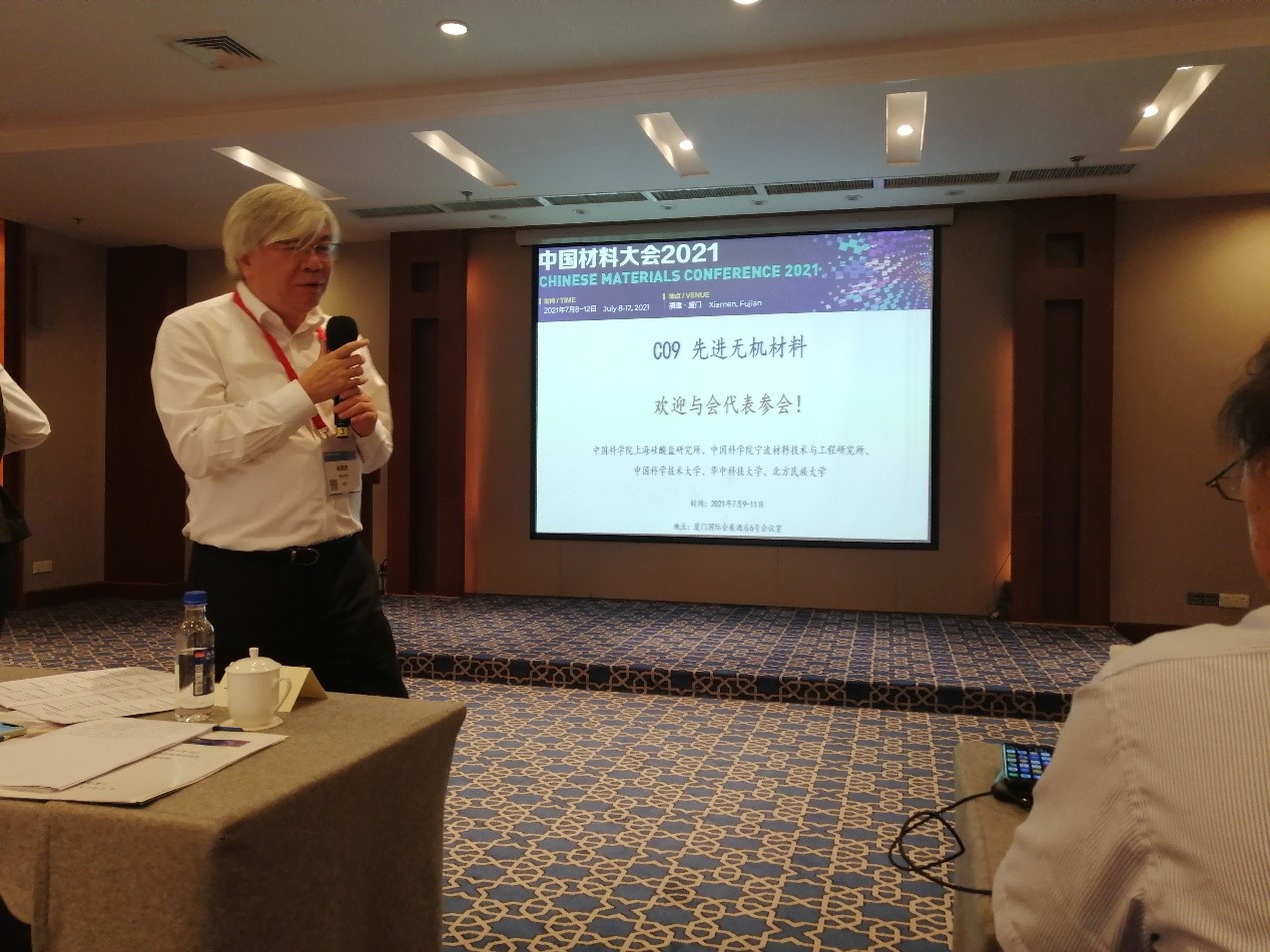 7月8日-12日,由中国材料研究学会主办的“中国材料大会2021”(以下简称大会)在厦门国际会展中心召开,中国科学院上海硅酸盐研究所、中国科学院宁波材料技术与工程研究所、中国科学技术大学、华中科技大学、北方民族大学等五家单位联合承办了第一届先进无机材料分会,分会由上海硅酸盐所所长宋力昕、宁波材料所所长黄政仁、中国科技大学教授李晓光、华中科技大学教授黄云辉、北方民族大学教授陈宇红、上海硅酸盐所副所长吴成铁共同担任主席。宋力昕、黄政仁、黄云辉、陈宇红、浙江大学材料学院院长韩高荣、中国建材总院国检集团首席科学家包亦望,以及Wiley出版社资深编辑梁多多等出席会议。来自各科研院所、高等院校、公司企业的100多位专家学者与研究生等参加了分会,分会第一单元报告由黄政仁与韩高荣共同主持。