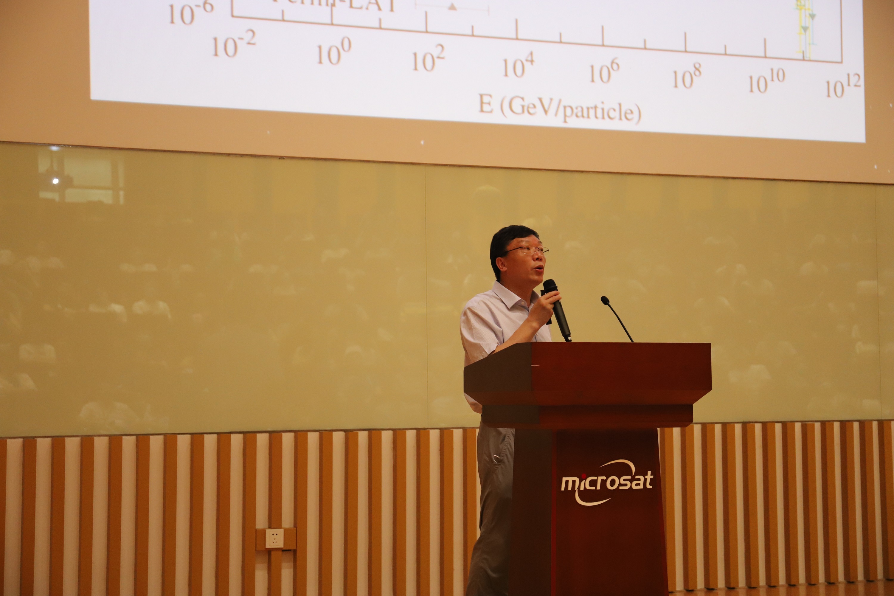 常进院士带来了《空间探测高能粒子和伽玛射线》为题的主题报告,作为国家天文台台长,是中国空间天文学领域主要学术带头人之一,也是紫金山天文台暗物质和空间天文实验室首席科学家。常进院士讲述了中国天文学发展史的三个阶段,介绍了 “悟空”卫星探测暗物质新技术,分享了“悟空”取得的重要成果。常进院士表示“科技发展离不开国家大平台的强有力支撑,没有国家实力就没有如今国内天文领域的广阔发展。” 报告结束,卫星创新院党委委员胡海鹰为常院士赠送了鲜花。