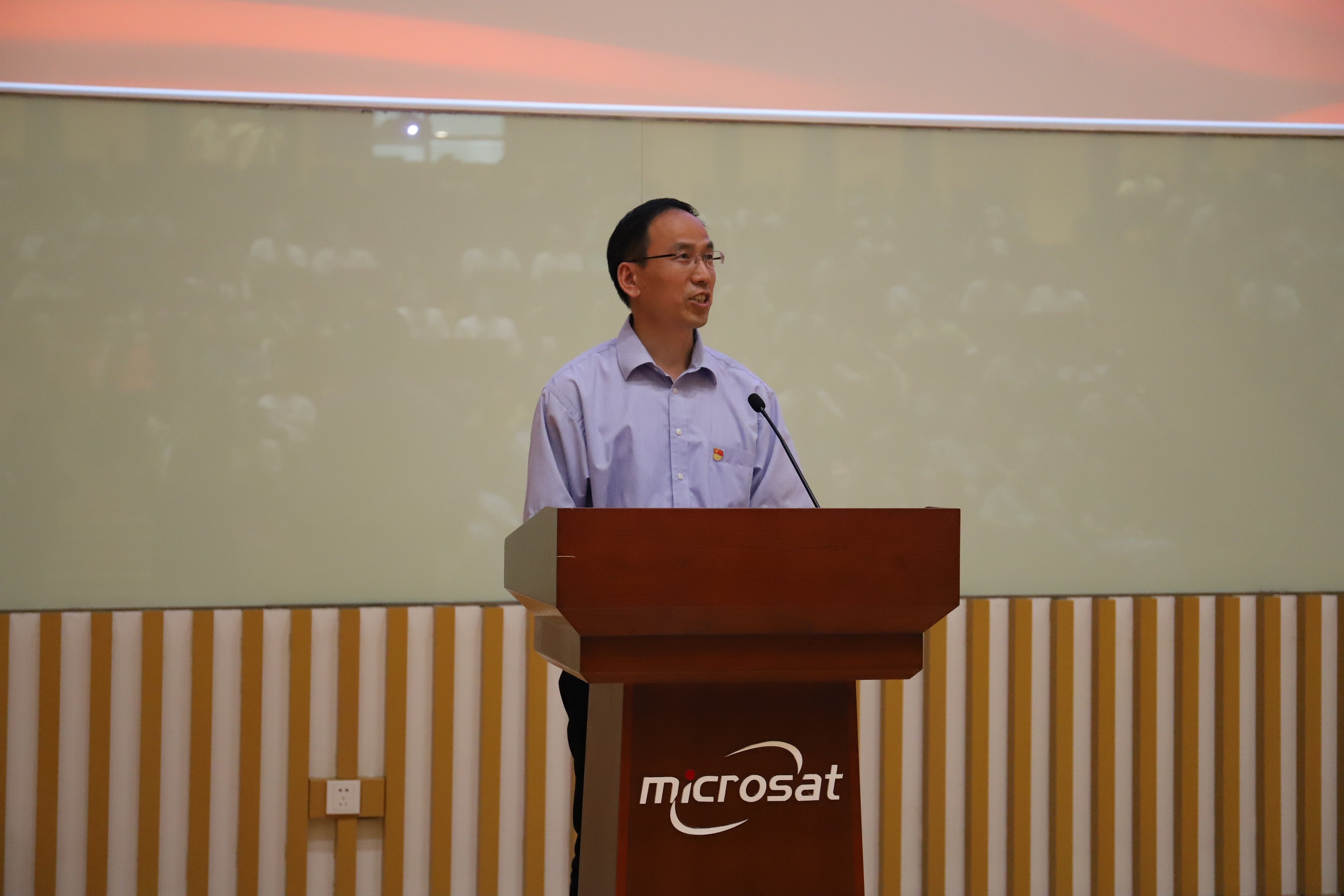 报告会由卫星创新院党委副书记、纪委书记周四根主持并致开幕词,出席活动的领导还有卫星创新院党委委员、副院长林宝军,党委委员胡海鹰以及上海天文台党委书记、副台长侯金良,纪委书记姚娅平,副台长袁峰。
