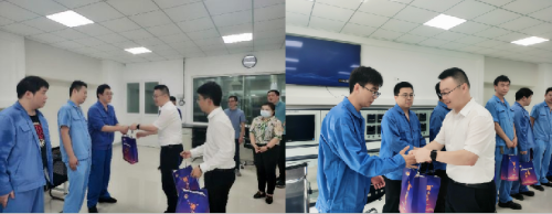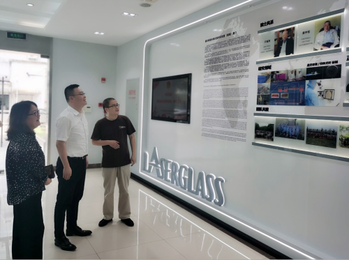 戴冰一行参观了高功率激光单元技术实验室展厅。廖梅松、陈树彬先后介绍实验室的发展历程和目前正在攻关的项目情况等。随后,戴书记来到连熔车间,给一线青年们送去了高温慰问品,并与他们握手,亲切交谈并询问工作近况。他对青年们在高温天坚持在科研工作一线的坚毅执着和奋斗精神给予了高度赞扬,并叮嘱大家高温天做好防暑降温工作,注意实验操作安全。