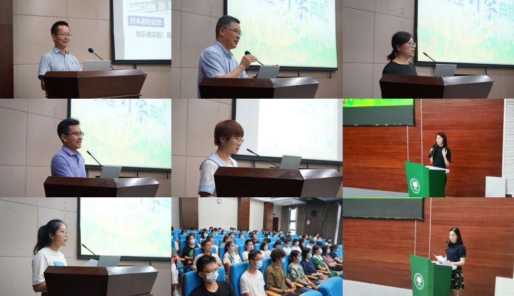 随后,学生代表发言。首先,高年级学生代表练杏花同学给学弟学妹们分享了自己的科研体会。她根据自己的亲身经历,提醒新生一定要把专业知识学习放第一位,要学会主动沟通,详细地做好实验记录,保持乐观的态度看待实验结果。接着,博士生新生代表温婷婷发言,她倡导同学们在新的阶段要多学习科学发展历史,时刻保持好奇心,努力学习和践行老一辈科学家精神。最后,辰山园区硕士生新生代表戴雨沁发言,她满怀对未来研究生生活的憧憬,期待勇攀科学的高峰。