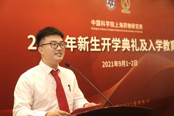 9月1日,中国科学院上海药物研究所2021年研究生新生开学典礼在承嘏厅隆重举行。药物所所长李佳、党委书记叶阳、副所长赵强、导师代表杨财广出席典礼,药物所2021级研究生、联合培养新生及研究基地2021级新生通过线下、线上的方式同步参加开学典礼。典礼由研究生教育处处长何敏主持。