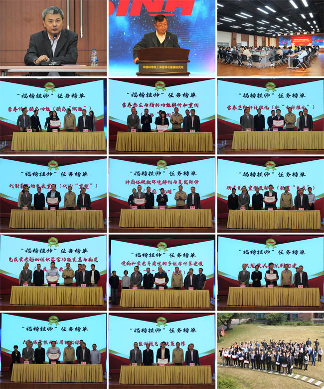营养修复胰岛功能(陈雁研究员领衔)、营养感应与脂肪功能解析和重构(郭非凡研究员领衔)、营养逆转肝纤维化(李于研究员领衔)、代谢紊乱的免疫重塑(潘巍峻研究员领衔)、肿瘤休眠微环境解构与复发转移(秦骏研究员领衔)、肠道免疫重塑及转归(钱友存研究员领衔)、免疫衰老驱动组织器官功能衰退与病变(肖意传研究员领衔)、慢病和衰老异质性的多组学计算建模(邵振研究员领衔)、大规模人群队列构建(宗耕研究员领衔)、大数据管控与应用技术体系(张国庆研究员领衔)、监测预见与决策支撑(陈大明研究馆员领衔)等11个重大科技任务的首席科学家分别与研究所科研分管副所长、研究所法人代表签署《“揭榜挂帅”任务榜单》,今年即获得所长基金启动资助,并实行“包干制”等放权模式。