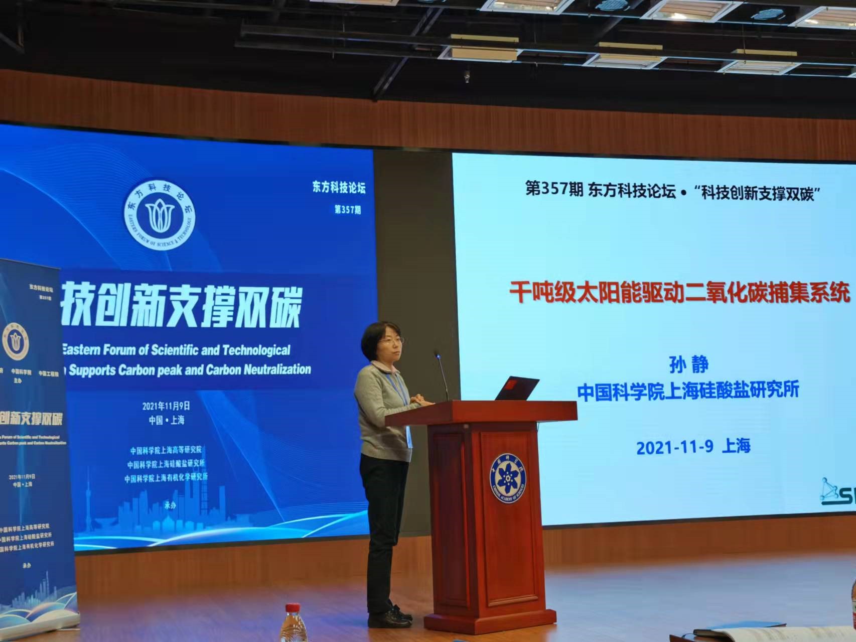 会议期间,围绕“科技创新支撑双碳”主题,黄震、唐勇、施剑林、赵东元四位院士和魏伟研究员分别以“碳中和愿景下的能源变革”、“浅谈碳循环转化—碳中和途径的一些思考”、“面向双碳目标的电化学过程”、“功能分子筛在‘双碳’下的作用”、“上海市科技支撑碳达峰碳中和建议方案”为题作了主题报告。来自中科院上海高研院、中科院上海硅酸盐研究所、中科院上海有机化学研究所、上海科技大学、华东师范大学、中科院上海微系统与信息技术研究所等单位的14名专家也分享了各自领域的最新成果。上海硅酸盐所20余位研究人员参加了此次会议,温兆银研究员、孙静研究员、王文中研究员和王现英研究员分别以“安全储能技术研究”、“千吨级太阳能驱动二氧化碳捕集系统”、“光催化还原CO2为C2+液体燃料的探索”、“基于新型电催化剂的氢能材料及器件研究”为题作了专题报告。