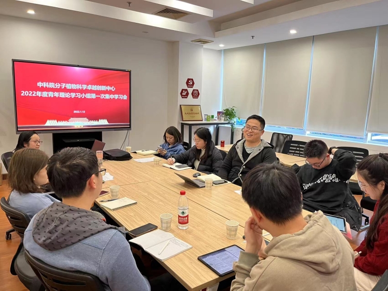 1月12日下午,中国科学院分子植物科学卓越创新中心青年理论学习小组2022年度第一次集中学习会在1号楼103会议室召开。中心团委书记魏婧主持会议,团委副书记司徒春燕、王娟以及研究生代表出席本次会议。