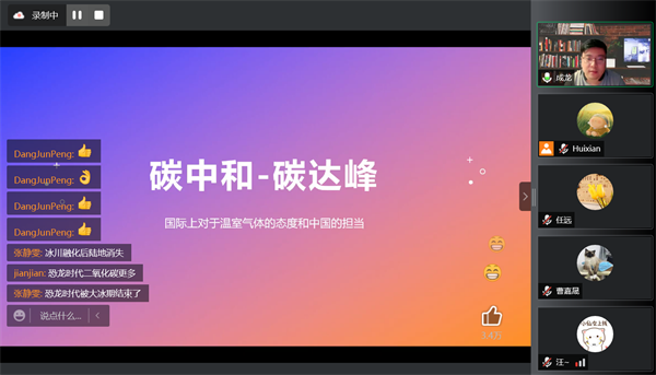 “碳排放、“碳中和”,这些耳熟能详却又略带神秘色彩的词究竟意味着什么?成龙博士结合自身开展风云气象卫星有关载荷的研制经历,给出了解答。他从温室气体如何闯进我们生活、新能源能否助力我们走出温室气体阴霾等问题娓娓道来,带领大家追寻碳循环的足迹,了解碳中和“1+1=0”的智慧,一窥地球未来的走向。本次活动作为上海技物所青少年科学创新实践工作站的选修课程,获得了新一批学员的热烈响应,来自复旦附中实践点的杨同学说:“讲座内容生动有趣,和课堂上学习的知识有很大不同,很好地开拓了视野,对国家‘双碳’战略有了更深的理解”。