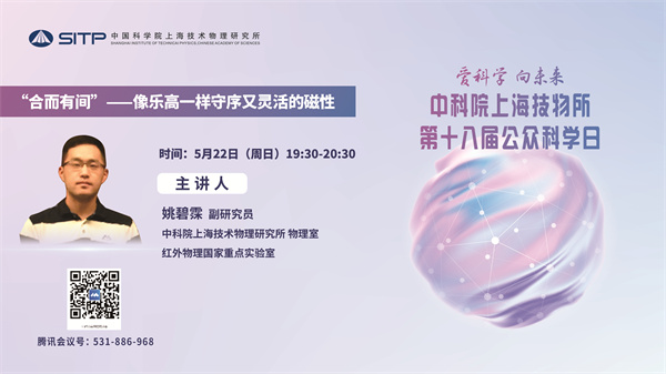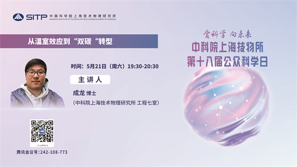 在5月21-22日这个特殊的“科学表白日”,上海技物所重点围绕国家“双碳”战略和加强基础科学研究,开展了别开生面的线上公众科学日活动。青年科学家成龙、姚碧霂分别作《从温室气体到双碳转型》、《合而有间——像乐高一样守序又灵活的磁性》科普报告。