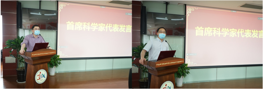 两位首席科学家代表发言,刘志勇研究员表示作为首批唯一的“自下而上”攻关团队,受中心对国家、中科院相关精神和政策宣贯的启发组建团队,瞄准神经发育生物学领域的关键核心问题,不断研讨聚焦科学问题,主动从“能做什么”向“该做什么”以及“什么重要、我们必须去做”转变,为学科发展贡献智慧与力量;周嘉伟研究员从资深PI的角度,回顾了近20多年来国际科技发展与合作的历史变革,深刻体会到全球科技创新已进入新阶段,能够领导和联合优势力量组织开展“衰老与神经退行性疾病”的相关研究“使命光荣、责任重大”,将不断厚植家国情怀,保持“国家队”、“国家人”的定力,勇挑国家战略科技力量主力军的责任担当,为创新突破作出应有贡献。杜久林希望首席科学家能够充分借助首席科学家负责制,以高度的责任感与使命感,带领团队高效推进攻关任务,确保中心“十四五”规划各项重点任务落地见效。