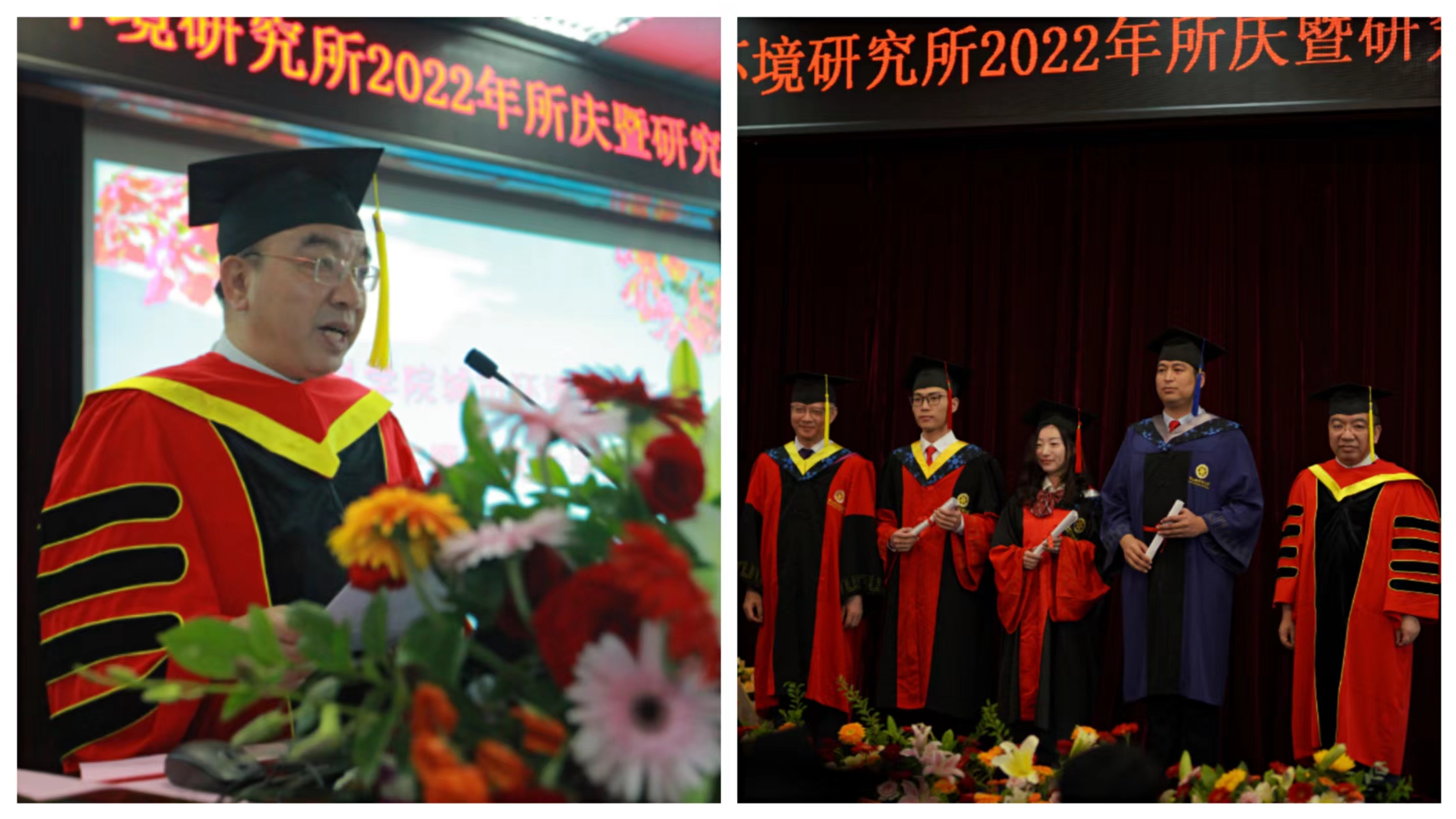 毕业典礼在庄严的国歌声中拉开帷幕。学位委员会主席贺泓院士、学位委员会副主席朱永官院士在线参会。所长曹荣、党委书记陈少华、副所长郑煜铭与研究所导师、在所学生、职工、毕业生家属及2022届毕业研究生欢聚一堂,共同见证这难忘时刻。毕业典礼由教育处处长王棠荣主持。