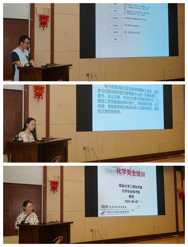 所信息中心任文向新生们介绍了图书馆科技文献与图书资源服务,朱佳介绍了信息化系统使用方法和网络安全注意事项;蔡军研究员、姚剑高级工程师为同学们进行危化品安全、辐射科研安全培训,向大家讲解了辐射安全、化学品危险品的使用和科研中注意事项;徐行派出所警官陈小芳为同学们带来了防诈骗专题讲座,增强同学们对各类诈骗的识别防范能力。