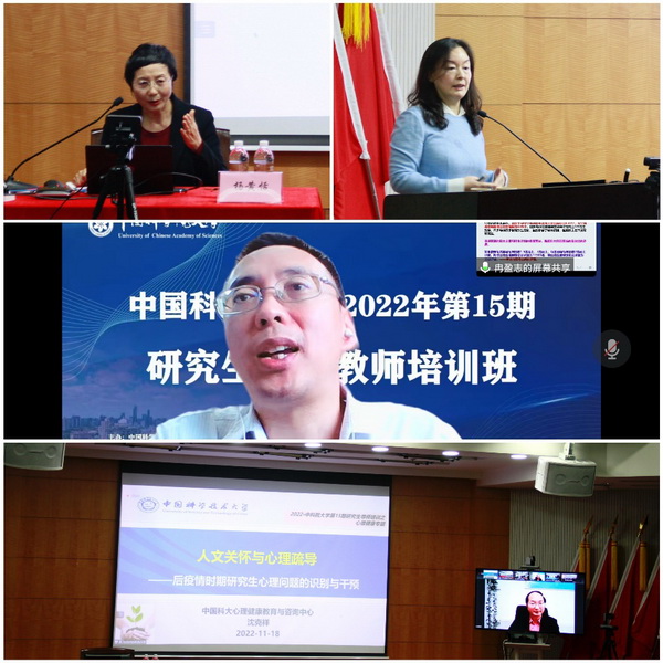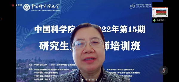 冉盈志作题为《国科大招生情况介绍和招生政策解读》的报告。详细介绍了国科大近年来的招生情况和招生政策,通过案例分析,进一步阐释了招生工作注意事项。杨黄恬作题为“How to be a mentor?”的报告。她以自己实验室为例,生动回答了导师的定位、不同研究生的带教、独立研究能力的培养、团队合作精神的激发、何时关注需关注学生等五个问题,分享和交流了她带教和培养研究生的宝贵经验。董爱武作题为《跟学生一起成长》的报告。她以向学生学习和探讨计算生物学、结构生物学和进化生物学等新知识的一件件趣事切入,分享了和学生共同学习互相激励、共同进步的经历和感受,强调培养研究生的过程是和学生一起探索陌生领域知识、互相治愈,实现教学相长的过程。沈克祥作题为《后疫情时期研究生的心理问题识别与干预》的报告。他以健康的新内涵为着力点,运用翔实的数据和案例,阐析了后疫情时期研究生心理问题的表现形式、影响因素等。引导导师们了解和识别研究生培养过程中可能出现的心理问题,加强对学生的人文关怀和心理疏导,做到心理异常情况的早发现和早干预。