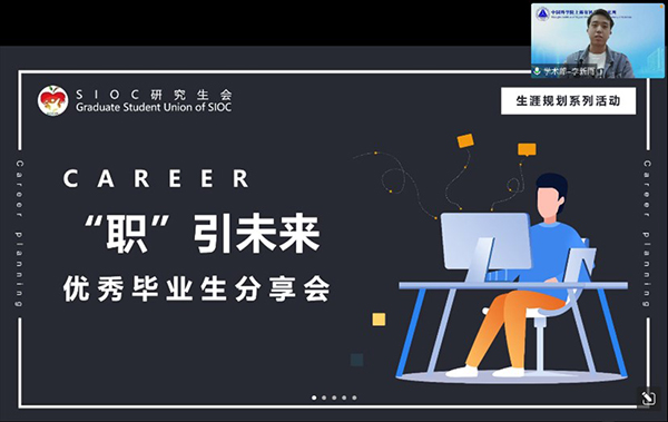 为增强学生生涯规划和职业发展意识,引导学生树立正确的就业观和择业观,提升学生就业能力和市场适应能力,上海有机所研究生会于11月14日晚举办生涯规划系列活动:“职”引未来——优秀毕业生分享会。本次就业分享会邀请了高彦山、龙厚芳、张吾斌、王宽四位优秀毕业生作为嘉宾,为同学们分享求职经验,解答求职困扰。